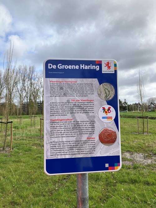 Een bomenrij én een landmark in één. Op 13 april 2023 was de onthulling van informatiebord ‘De Groene Haring’ en werd de Groene Haring officieel welkom geheten in onze stad. De haring is een bomengroep in de vorm van een omhoog springende haring. De 51 Italiaanse populieren en drie Kaukasische vleugelnoten geven de rand van de Broekpolder - ter hoogte van de Waterpoort - een extra Vlaardings tintje groen.