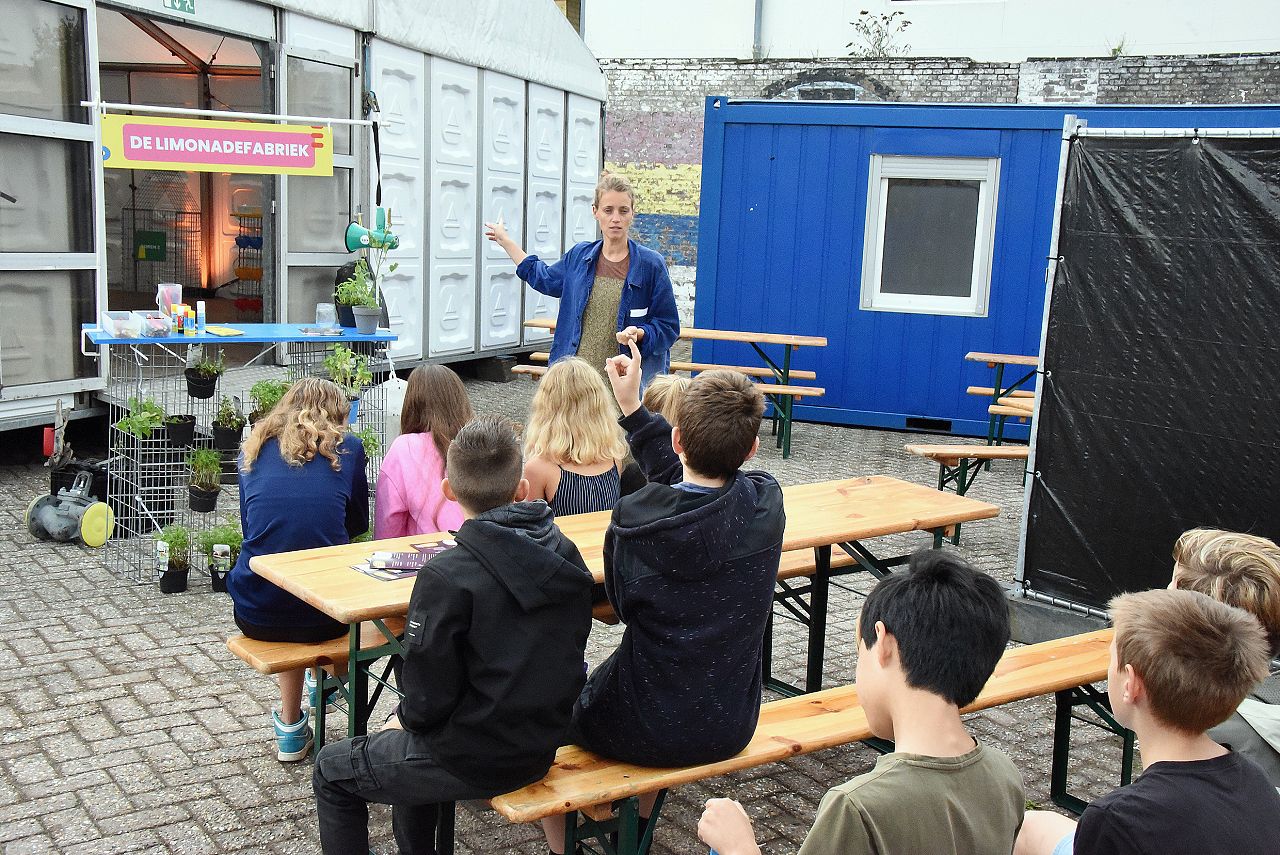 Hoe werkt zoiets nou? En wat loopt er precies door die buizen heen? Dat was de vraag waarop de deelnemende kinderen tijdens deze workshop antwoord probeerden te vinden. Na een korte introductie begonnen ze aan hun eigen avontuur: het bouwen van een waterzuiverende limonadefabriek. In een werkplaats gevuld met grondstoffen, zuiveringsmateriaal en gereedschap, werden de leerlingen uitgedaagd om leidingwerk te bouwen. Met behulp van buizen, kranen en koppelstukken creëerden ze een waterbaan die stap voor stap vuil water zuiverde. Vervolgens voegden ze hun eigen smaken toe en bottelden ze hun zelfgemaakte limonade.