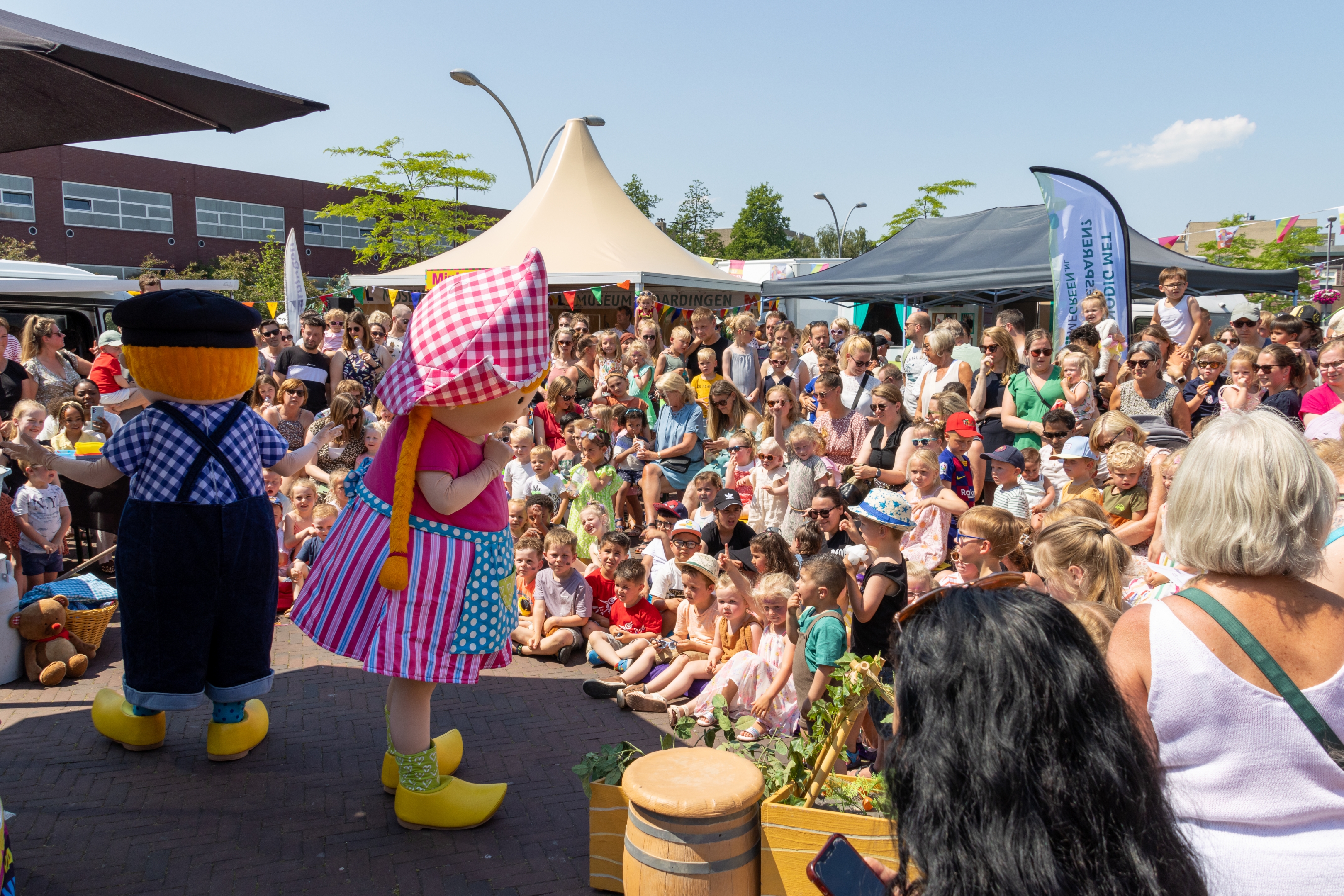 Na hun optreden werd de winnaar van de KleurKroon wedstrijd bekendgemaakt door wethouder Bart Bikkers en zijn zoon. De winnende kroon werd gemaakt door Jake (7) van IKC Ambacht. Hij mag binnenkort samen met heel zijn klas naar een voorstelling in de Stadsgehoorzaal. Aansluitend op deze feestelijke uitreiking verzamelden veel kinderen én volwassenen zich bij het kleine podium voor een feestelijk optreden van Fien & Teun. Dit vrolijke boertje en boerinnetje gaven een mini-show én namen de tijd om met iedereen op de foto te gaan. Er werd enthousiast meegezongen én gedanst.