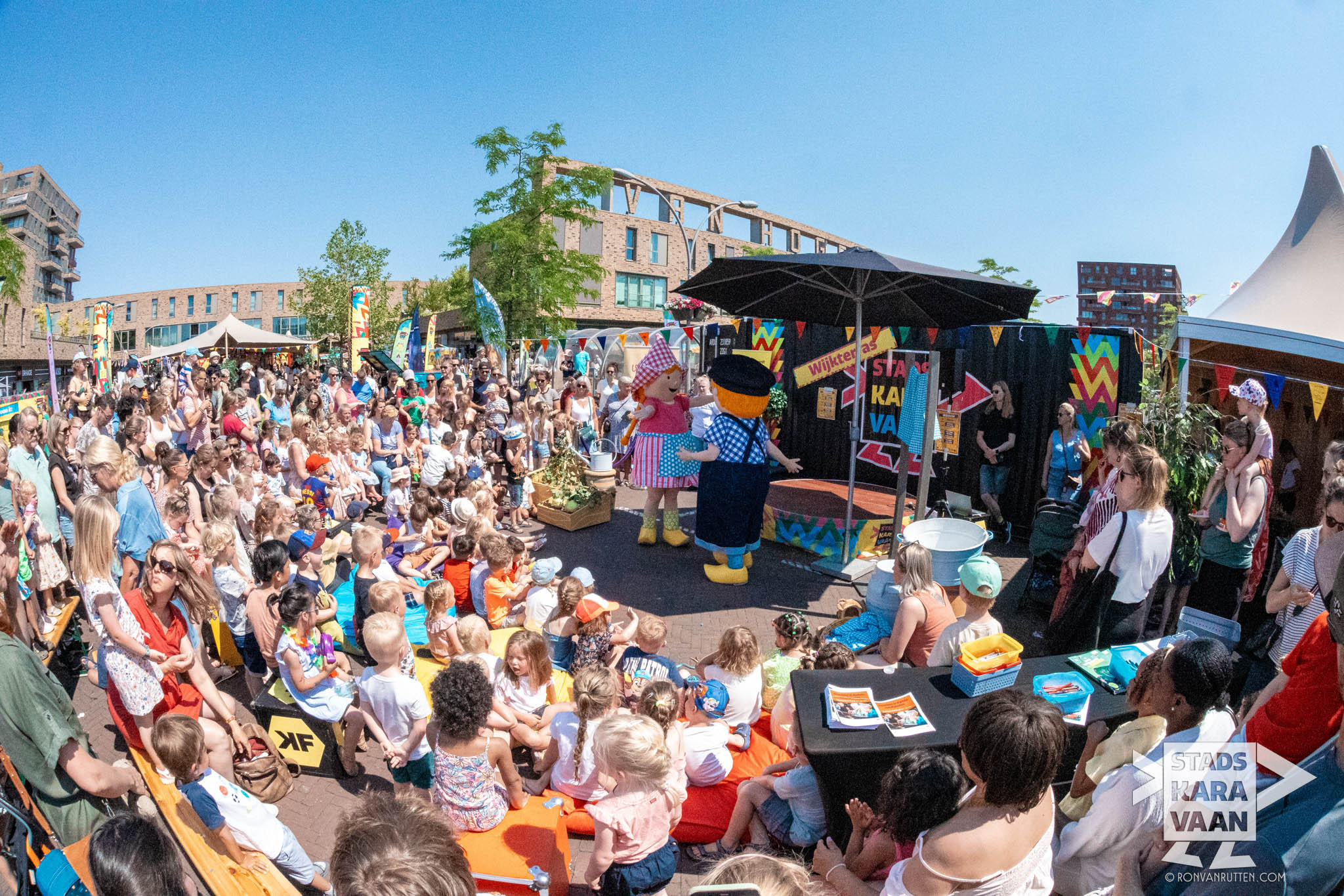 In de al heerlijk warme ochtendzon verrees het festivalterrein op het winkelcentrum. De eerste vroege winkelaars zagen hoe de podia en diverse tenten opgebouwd werden door het team van de Stadskaravaan. Om 13:00 uur was het al gezellig druk op het terrein en werd het programma officieel geopend door presentator Sjaak Bral samen met wethouder Bart Bikkers en optredens van Jingle componist Ellis Piek, Demi Point en Theater Jelicious. Samen zorgden zij voor een visueel en muzikaal spektakel, wat meteen de energieke toon zette voor de rest van de dag.
