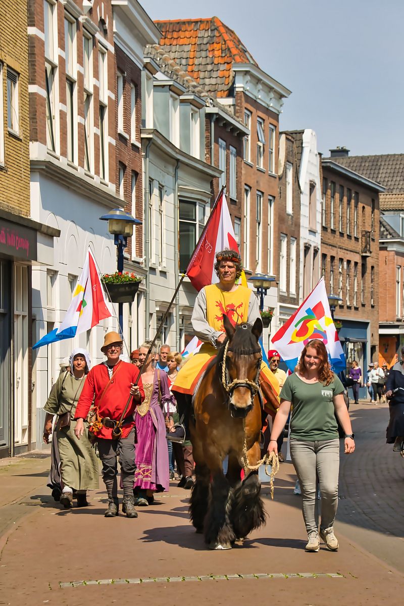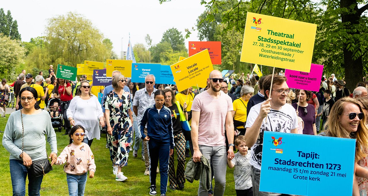 De stadsrechtenstoet was een tweedaagse middeleeuwse stoet die van Den Haag naar Vlaardingen ging. Het doel van dit historische evenement was om nieuwe stadsrechten naar Vlaardingen te brengen en de geschiedenis opnieuw te beleven. De 30 kilometer lange wandeltocht werd geleid door graaf Floris V - gespeeld door acteur Joris Lutz - en begon op 13 mei 2023 vanaf een middeleeuws kampement in Den Haag. De route voerde die eerste dag door de straten van Den Haag richting Delft.