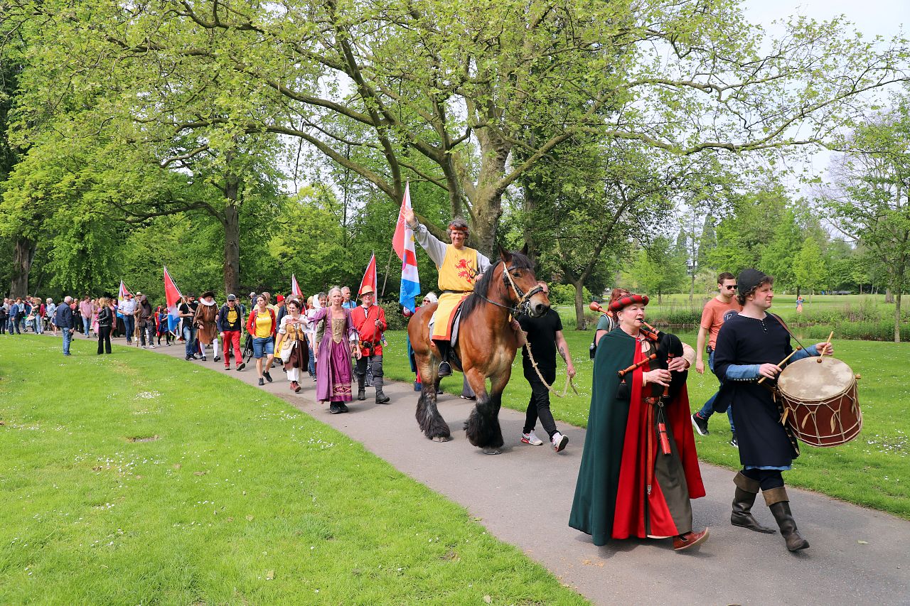 Na de eerste dag wandelen, overnachtten de deelnemers in het Kruithuis in Delft. Op de tweede dag ging de tocht verder via Schiedam naar Vlaardingen, waar bij de stadsgrens Vlaardingers aansloten. De inwoners en ook anderen geïnteresseerden vertegenwoordigden de stad van nu.